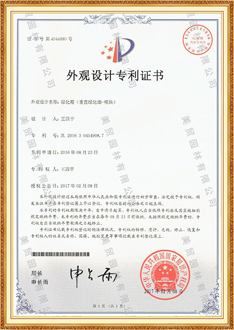k8一触即发人生赢家有限公司荣获多项专利及证书,包括外观设计,园林设计,产品设计等,产品经过国家质监局检测合格发放质检合格证书。